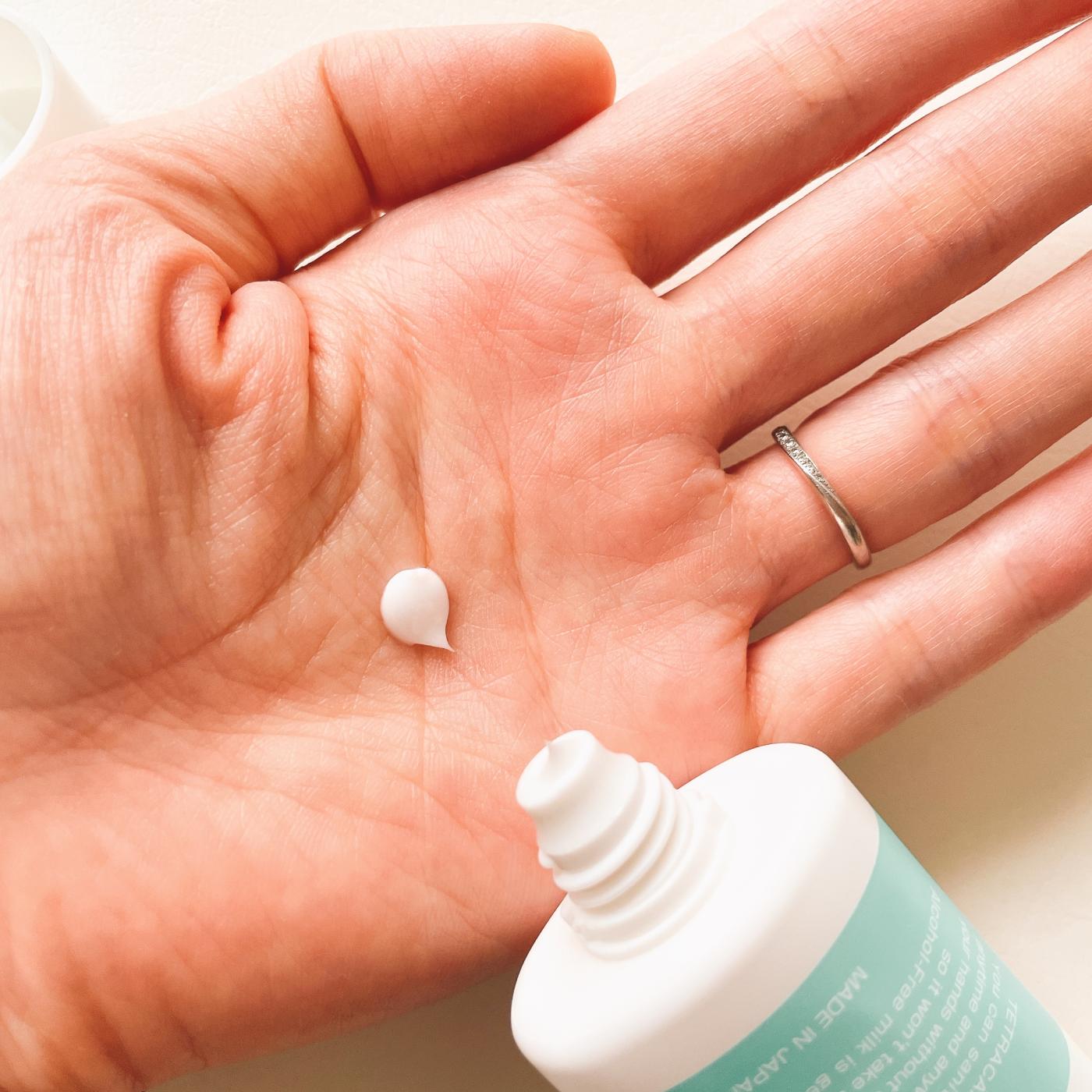 一見ベタつきそうな硬めのクリームなのにしっかり擦り込むと全然ベタつきもせず、さらっとしつつしっとりした仕上がり。