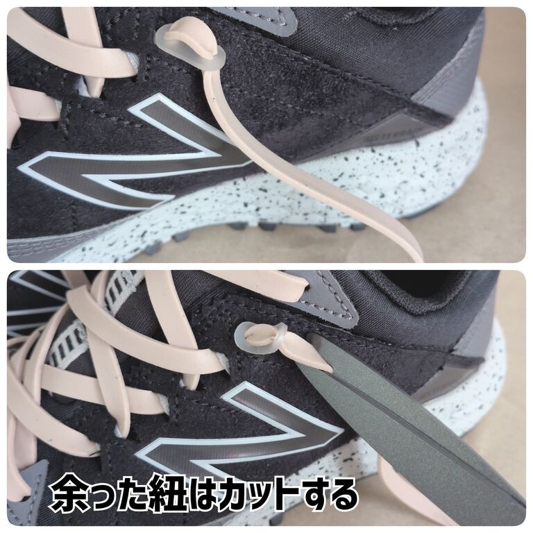 紐がほどけたときに結び直す手間がなくなったのと、履くときも脱ぐときもラクです。