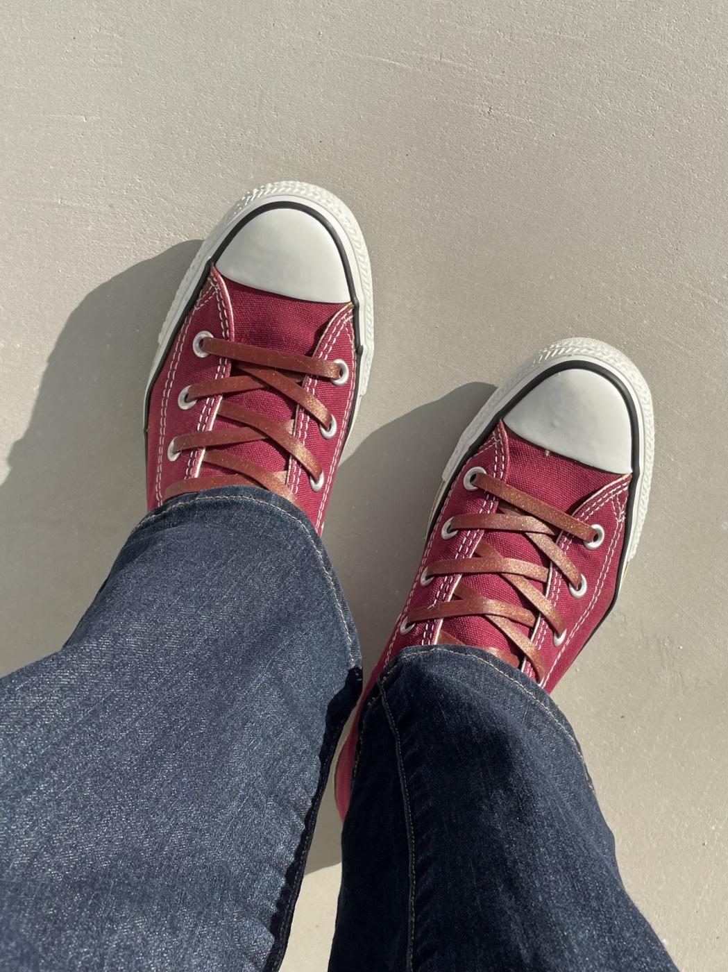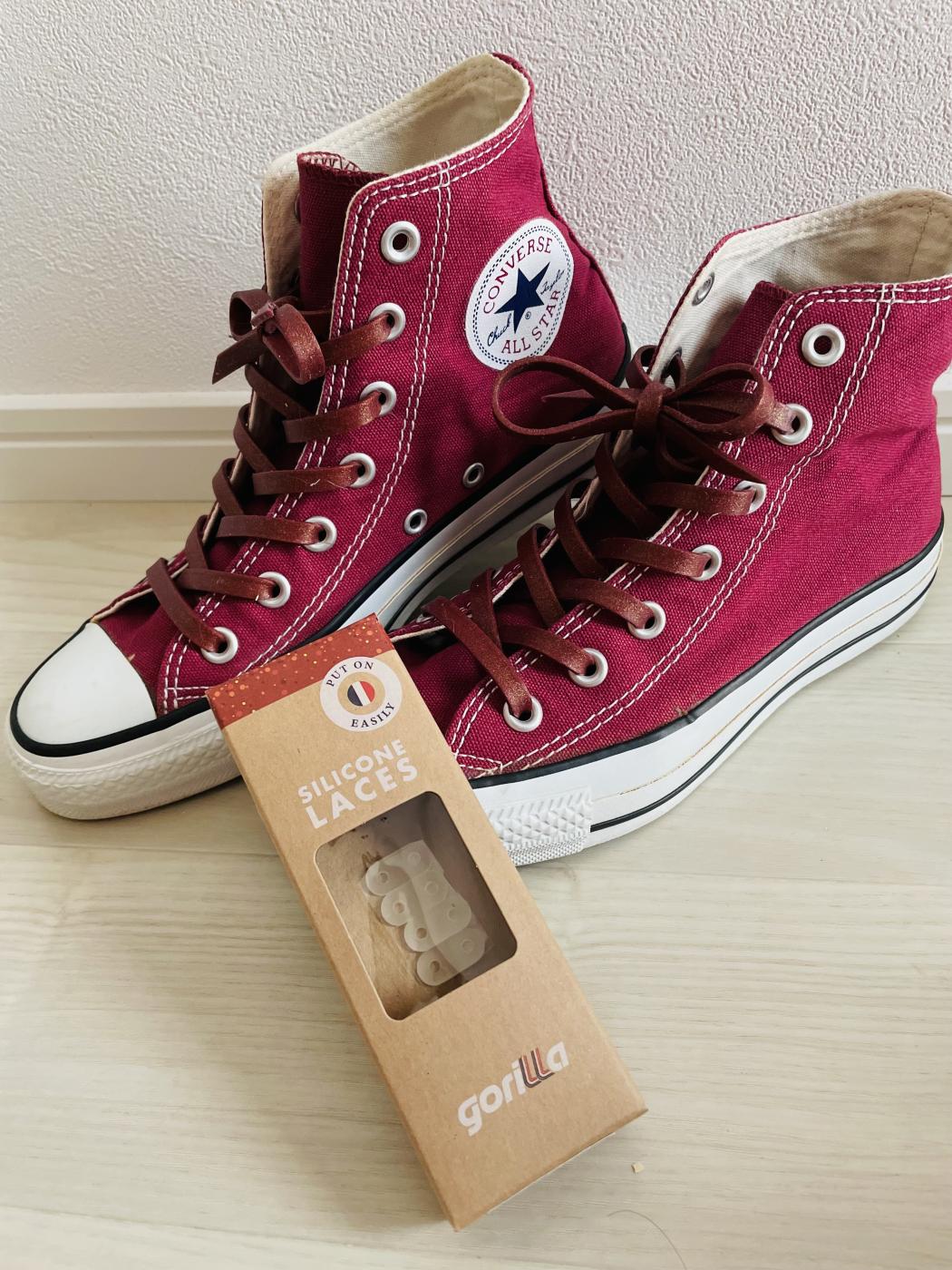 シリコンの靴紐ってどんな使用感なんだろうとワクワクしながらコンバースのハイカットスニーカーに紐を通してみました☆