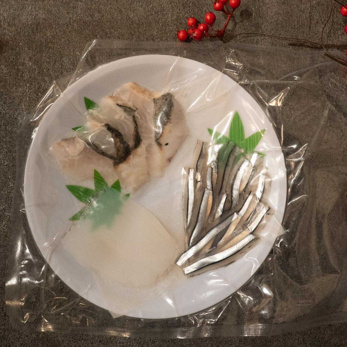 パックには、その時の選りすぐりの3〜4種のネタを、最も美味しく感じるよう贅沢に厚切り(4〜5切れ)にして封入されています。