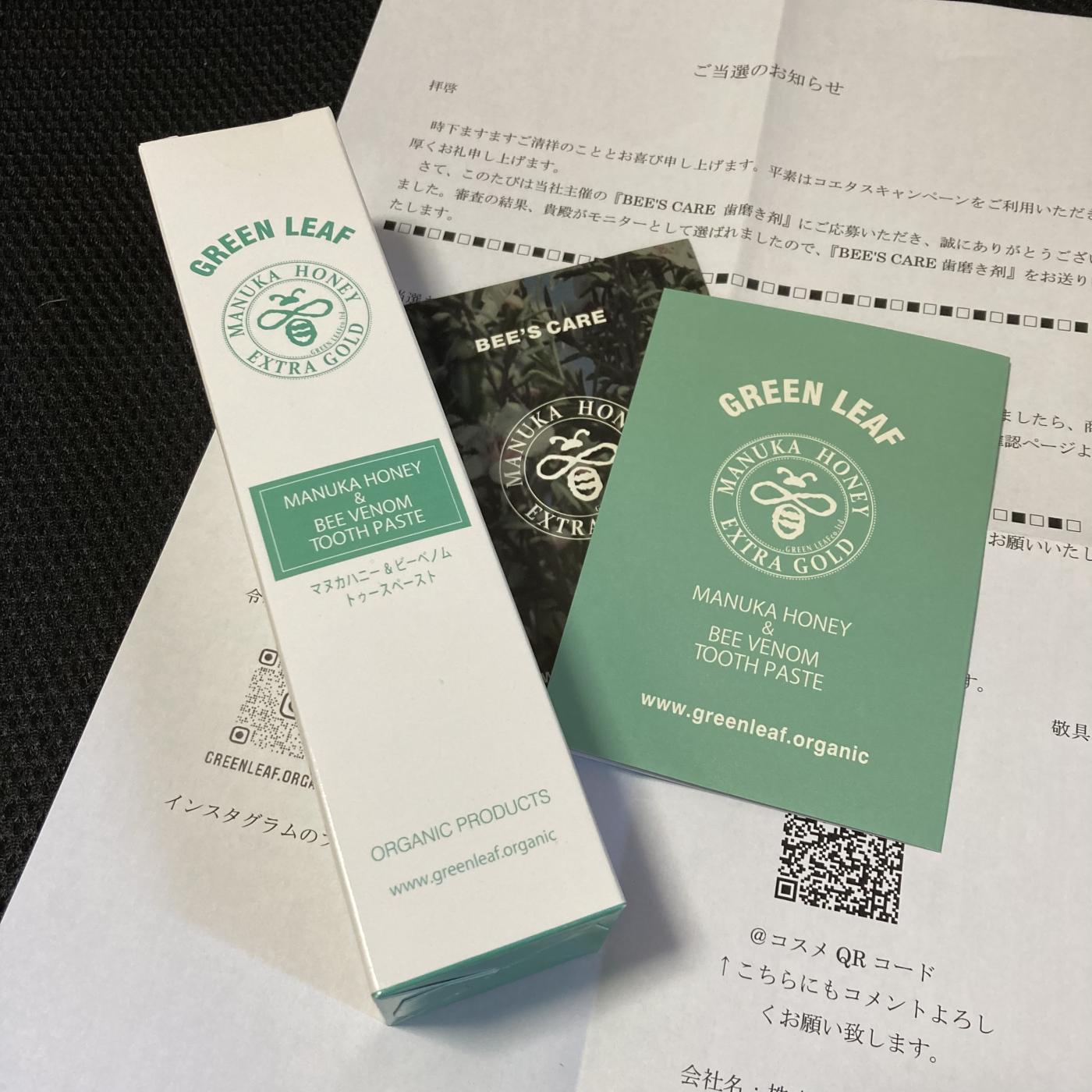 GREEN LEAF様の〖BEE'S CARE 歯磨き剤〗をモニターさせていただきました💕 マヌカハニー入りの歯磨き...