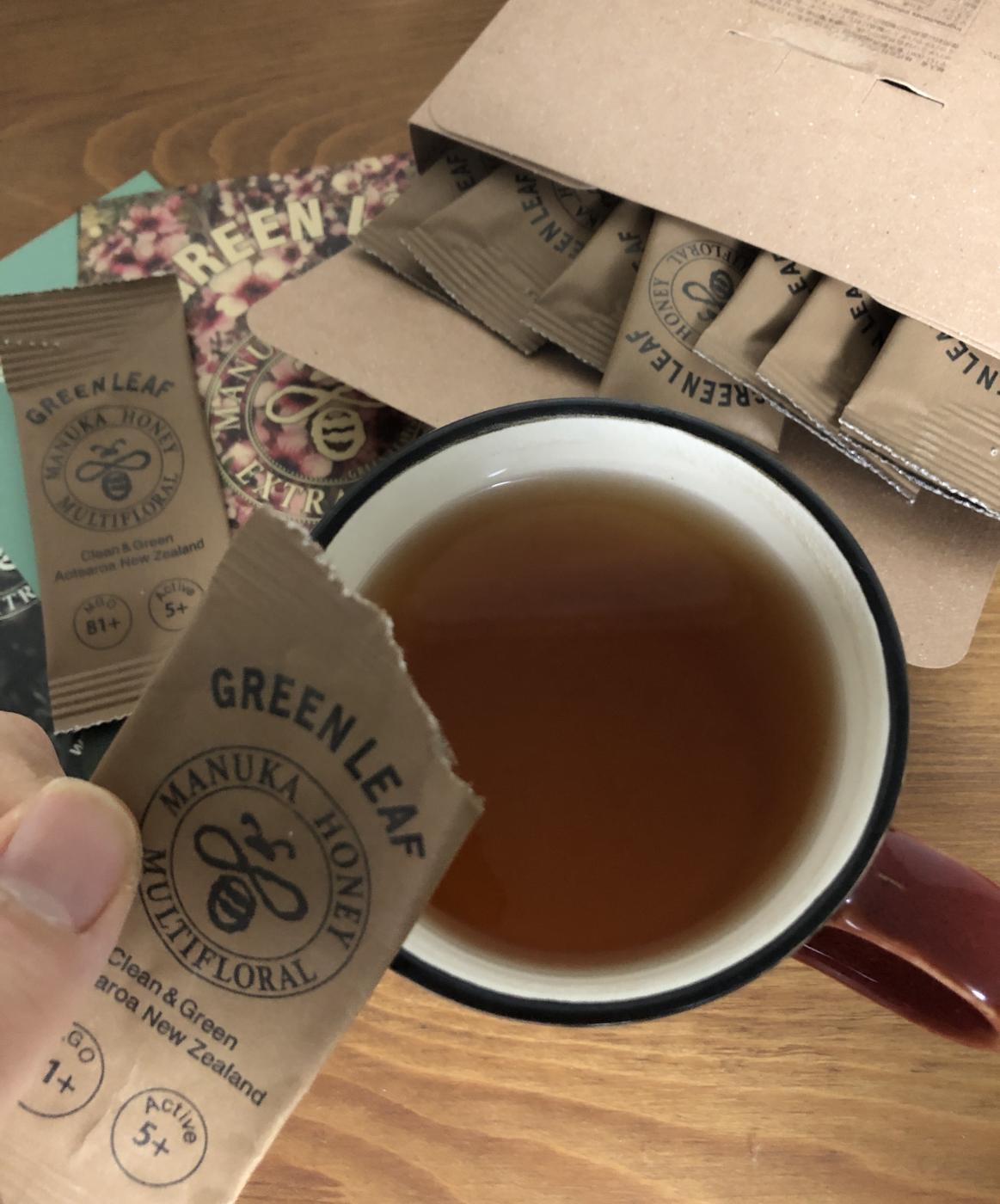 Green leafのオーガニック マヌカハニー アクティブ5+は、濃厚で、お花のような、フワッとした香りと酸味が少しする、奥の深い味わい💕
