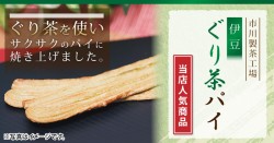 やわらかく丸く仕上げるために形がグリグリしていることからぐり茶と呼ばれているお茶を使ったサクサクの「伊豆ぐり茶パイ」