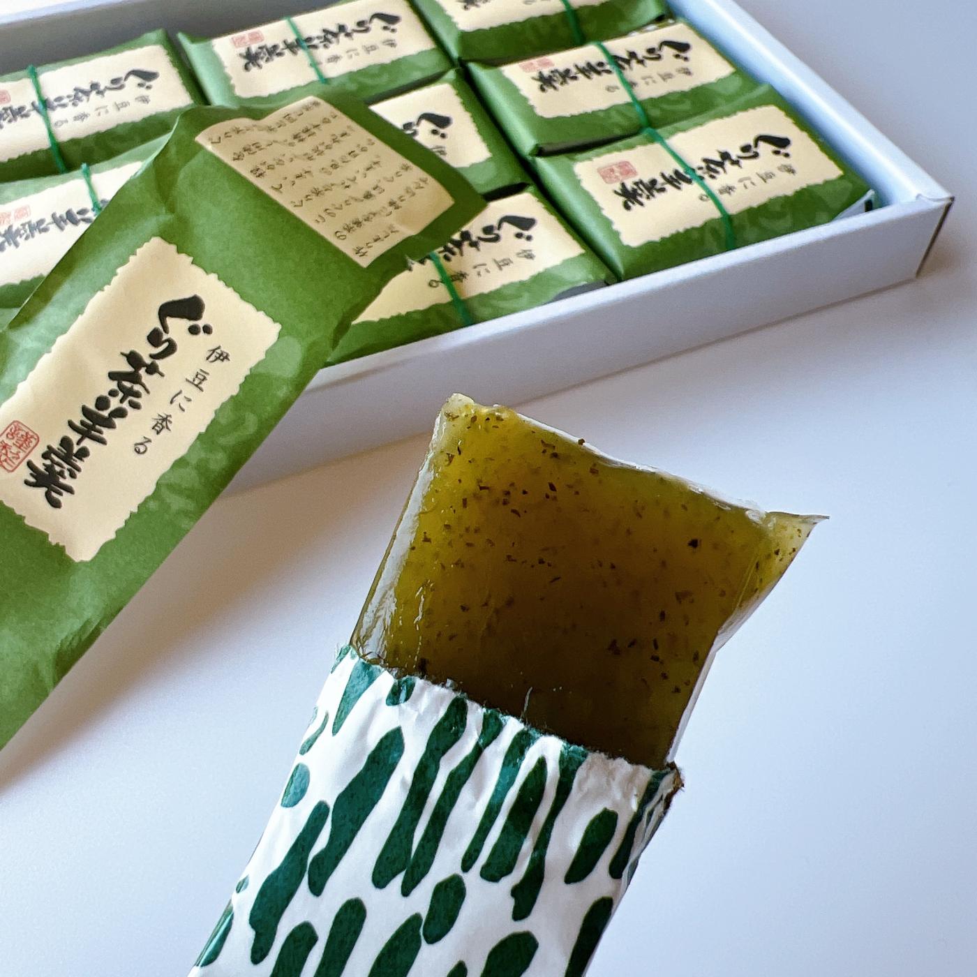 ぐり茶の細かい茶葉を混ぜ合わせた羊羹。