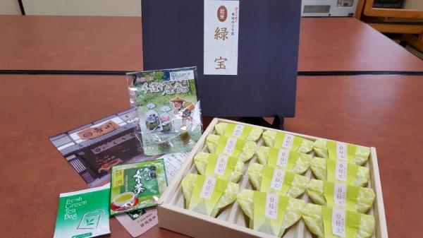 「お茶」といえば「静岡」、「静岡」といえば「お茶」ですが、その静岡発、市川製茶工場のぐり茶の茶葉が入った羊羮とお茶のセットです。