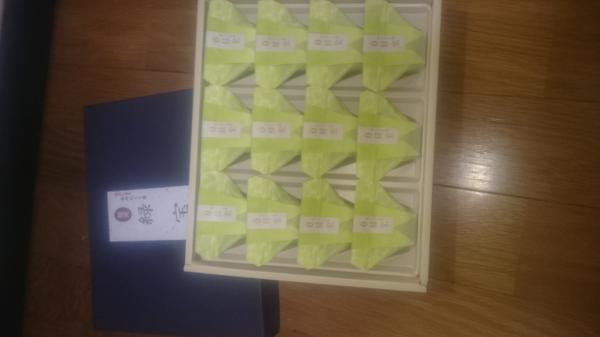 一つ一つがお茶を連想させる、綺麗な緑色の和紙に包装されていました。