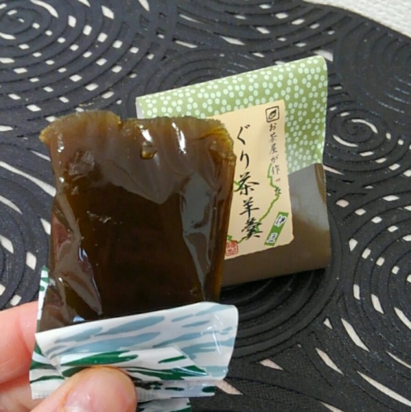 ぐり茶の葉をいれた羊羹を食べてみました。私は名古屋出身なので羊羹は子供のころからよく食べていまし...