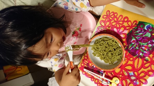 娘は食べむらが激しく、麺類はわりと好きなのですが残すこともしょっちゅうでいつも悩んでいますが、ぐり茶そばを食べさせてみたらペロリと完食!しかもおかわりとまで言いだしました!