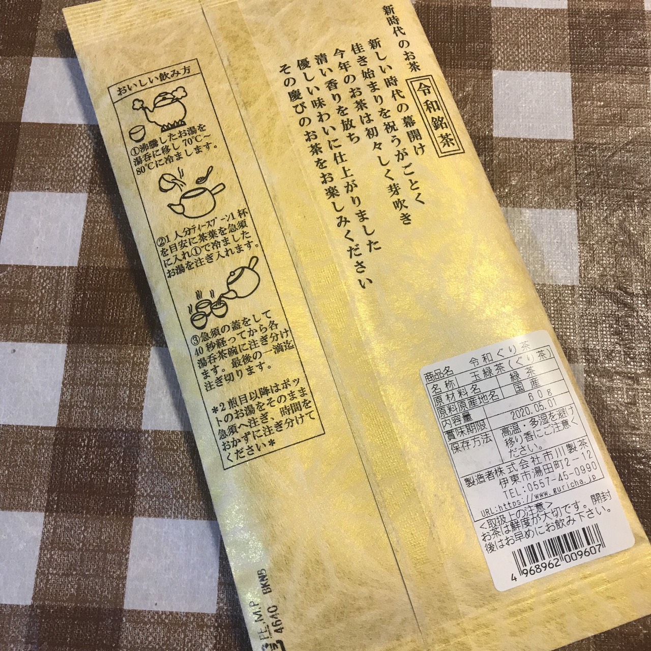 新元号に変わった令和元年5月1日に摘んだ特別な茶葉、「祝 令和ぐり茶 60g」をお試しさせていただきました。