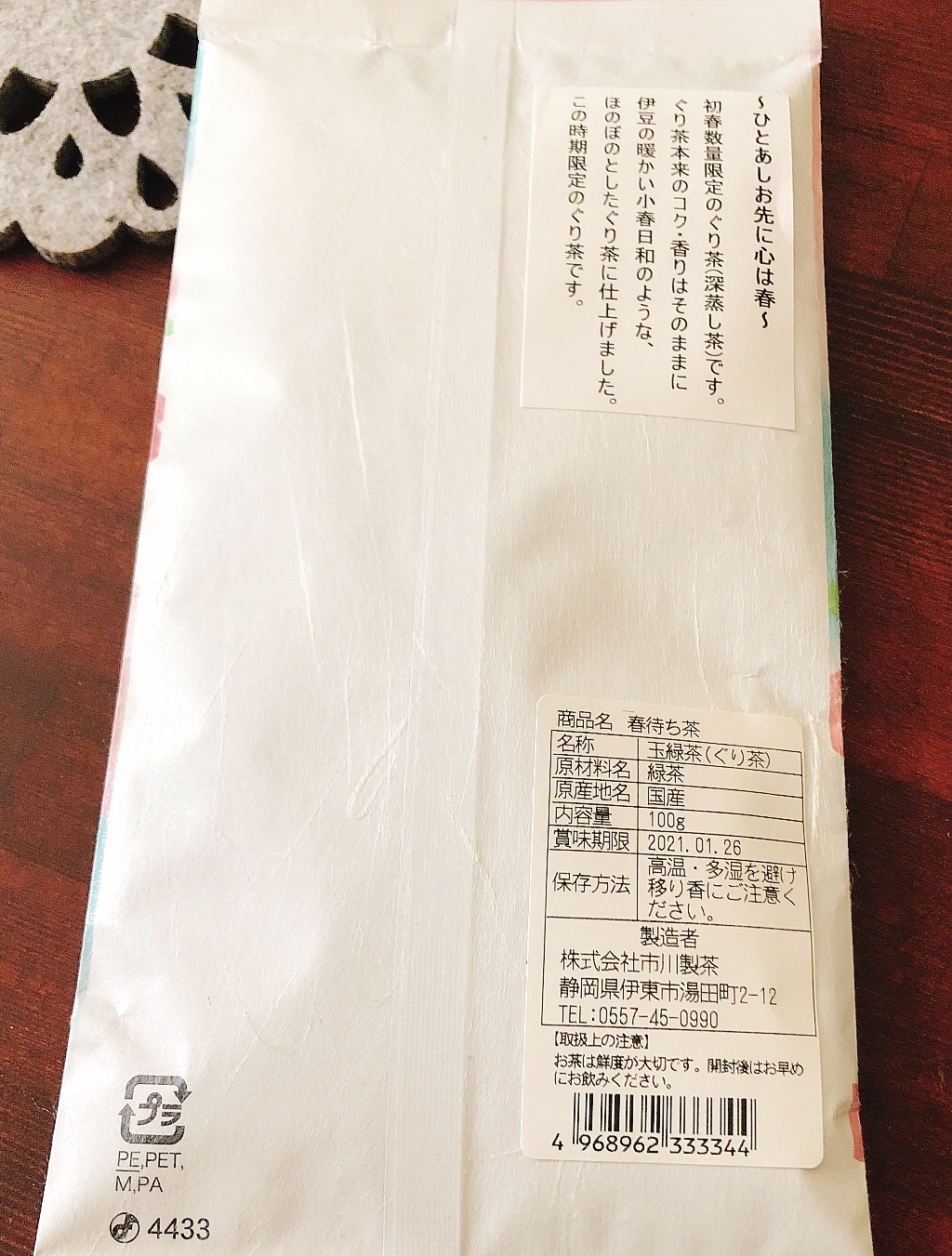 伊豆に香る市川のぐり茶「春待ち茶」をお試しさせていただきました。 こちらは、初春数量限定のぐり茶(...