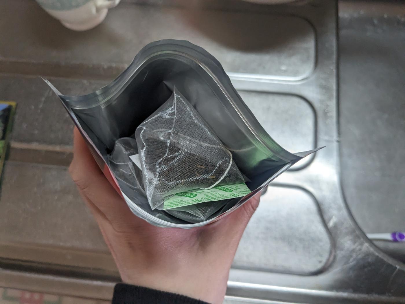 マグカップにティーバッグを入れて、お湯を注いで作りました。