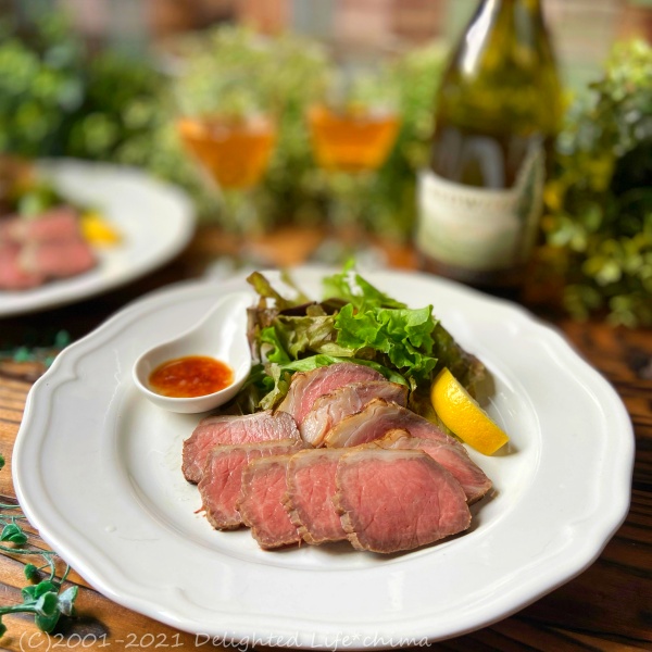 昨夜は家庭菜園のお野菜を添えた壱岐牛のローストビーフをいただきました。