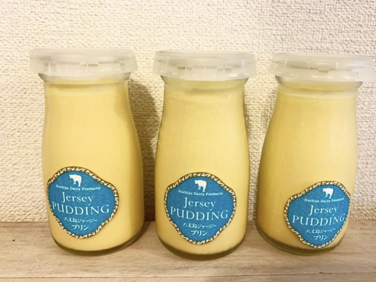 八丈島ジャージープリンは、 八丈島ジャージー牛乳、八丈島ジャージー生クリーム、しゅりの里『放し飼いたまご』、グラニュー糖(北海道産) すべて国産品のものを使用しているこだわりのプリンです。
