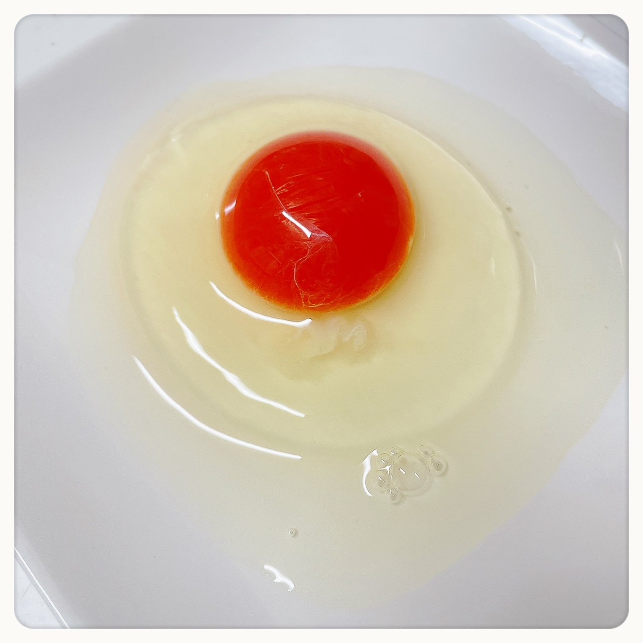 割ってみると、黄身がとても濃くてまさに鮮やかなオレンジ色。