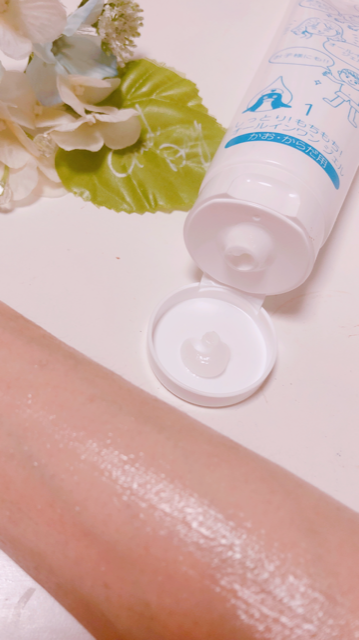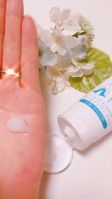 白の柔らかめのテクスチャー、べとつかない、つけたあとはさらっしたジェルだから、いつでも気兼なくつけられるよ(*・v-)))♡