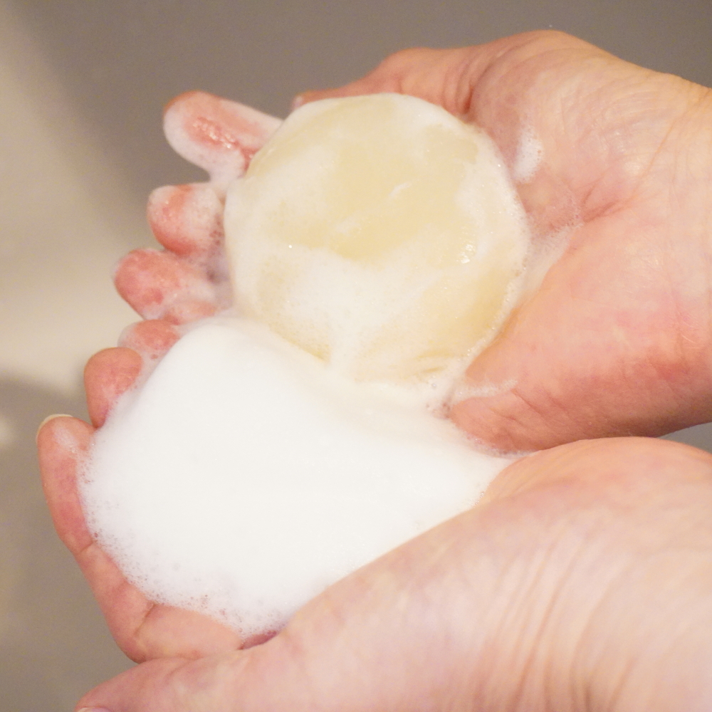 泡立てネットを使ってしっかり泡立ててから洗顔をしています。