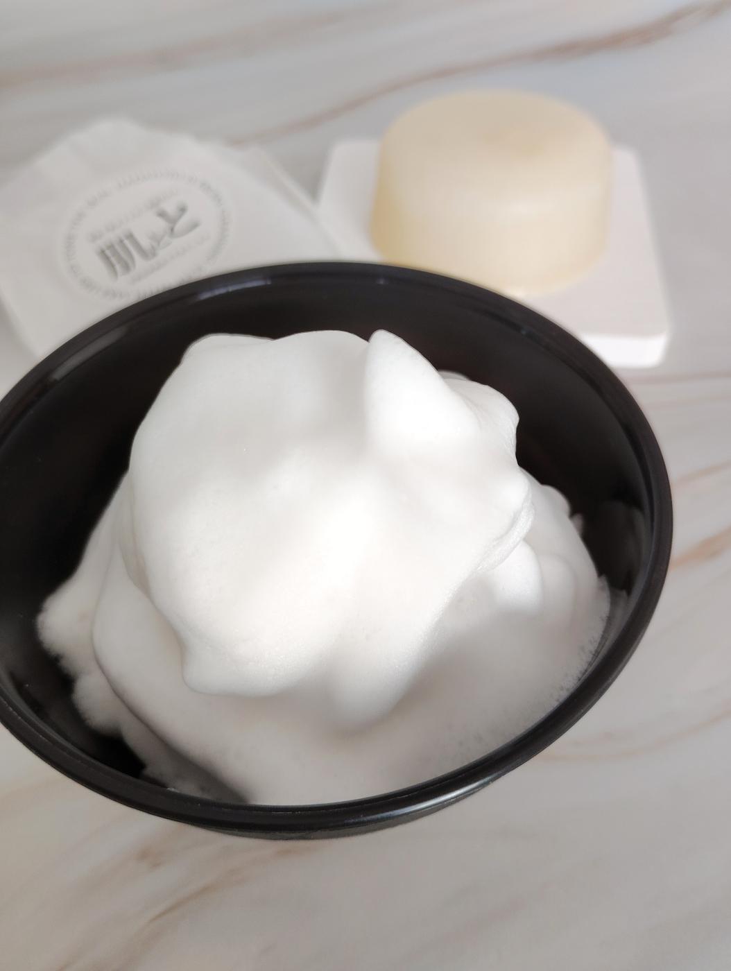 泡立てネットで丁寧に泡立てると、もっちり濃密な泡が簡単に完成🫧