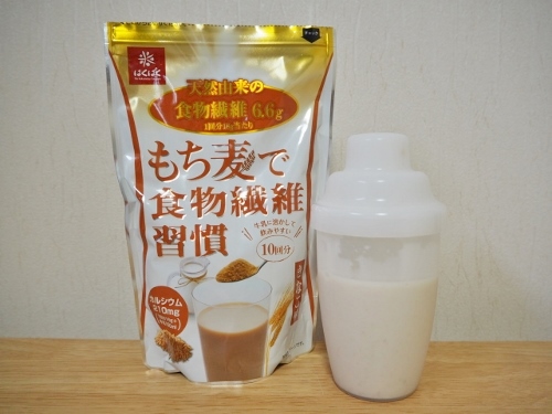 食物繊維の多いもち麦やきなこなどを配合したもち麦ドリンクです!