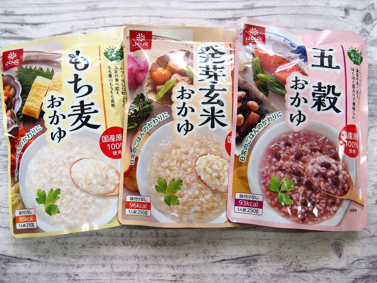 そんな折、はくばくさんの「暮らしのおかゆシリーズ」をお試しさせていただきました。五穀おかゆ、発芽玄米おかゆ、もち麦おかゆの三種類もお試しさせていただけることになりました!