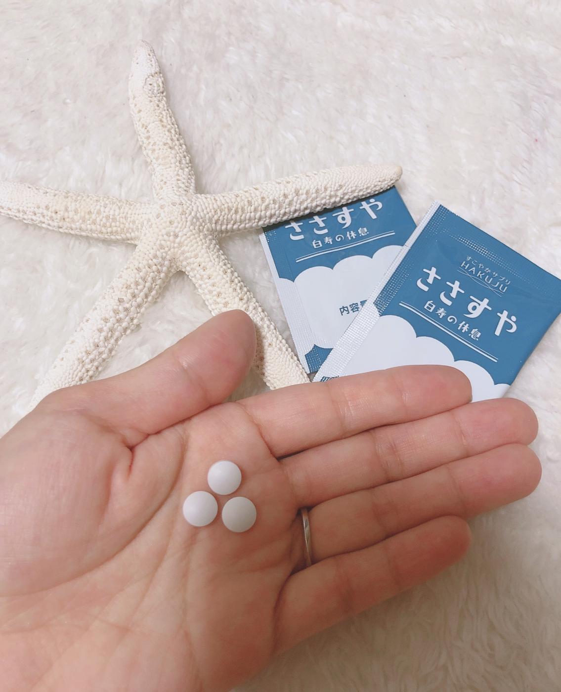 クマザサ、大麦(GABA)、ラフマを配合したサプリメントです。小さな白色の粒で老若男女問わず飲みやすい大きさで口に含んだ瞬間少しハーブのような香りがしますが後味は残らず、簡単に飲めます。一袋三粒入りで1ヶ月分(30包)が箱の中で分けられているので毎日飲み忘れる事もなく、サイズ的にも持ち歩きにとても便利なサイズなので簡単に摂取できる所も高ポイント。