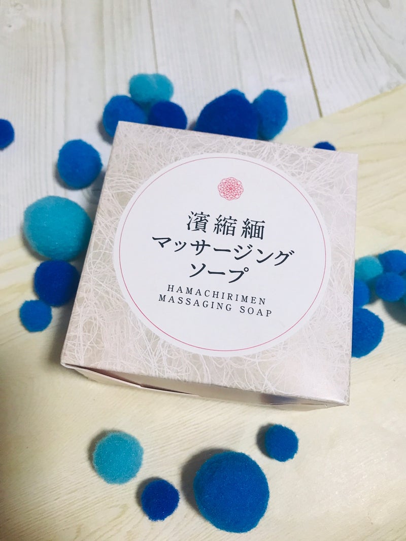 濱縮緬マッサージングソープ 使ってみました🙌 はちみつ色のしっとりした固形石鹸です。 絹糸を束ね...