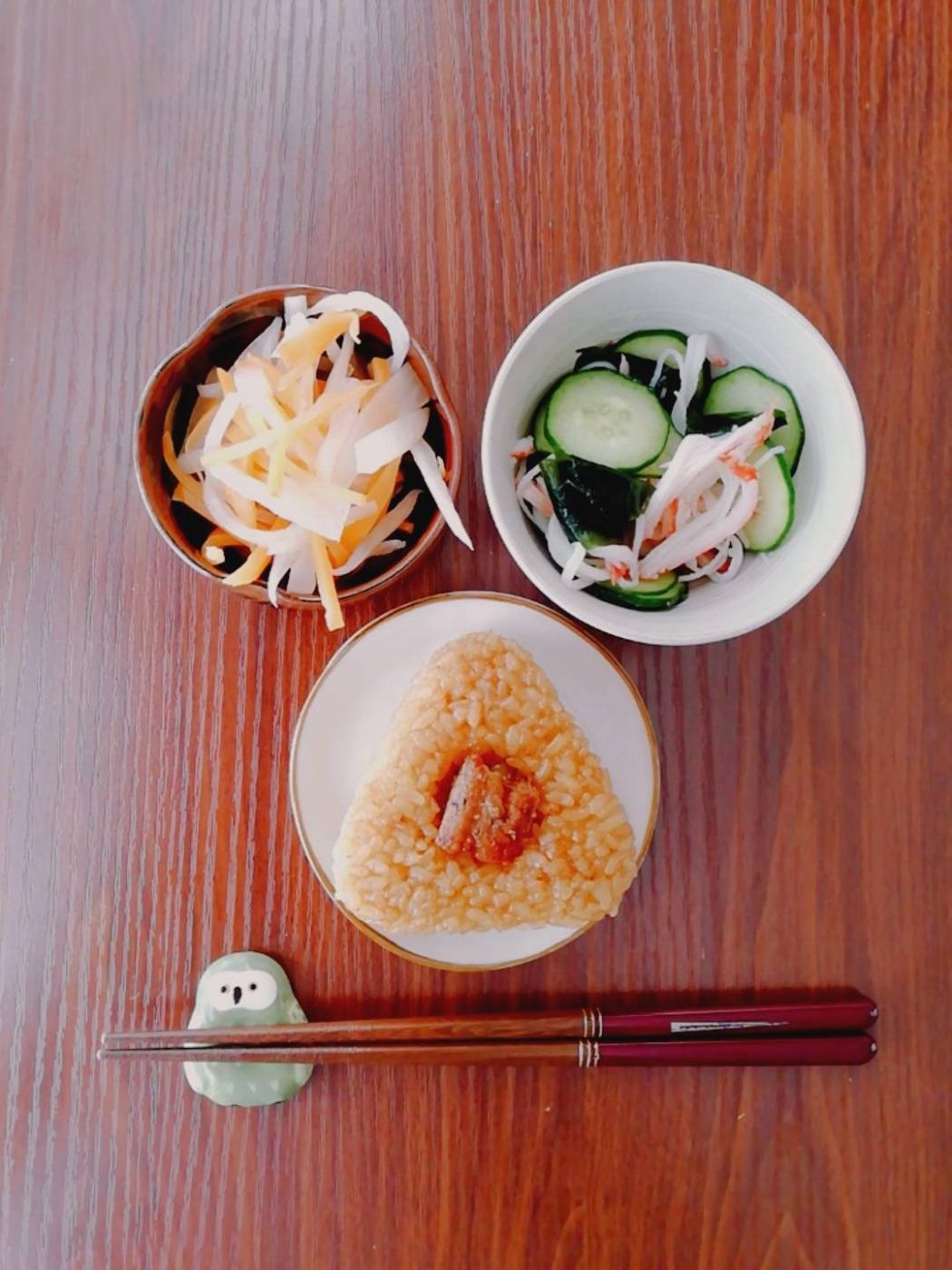 ある日のおにぎりワンプレートランチ このおにぎりは、株式会社浜名湖鰻三商店 うなぎ処勝美さんより...