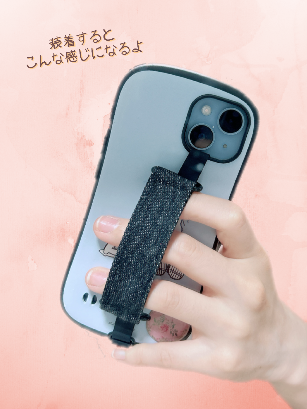 こちらは糊や粘着なし!スマホケースにハンモックのようにかけて使うスマホバンド。