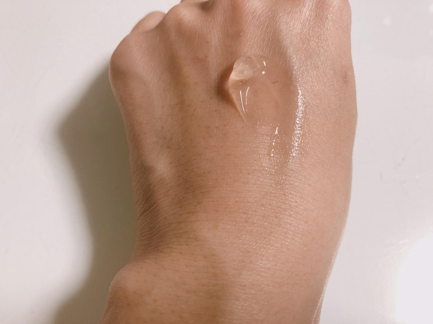 水分量の多いジェルを肌に馴染ませていくと、乾燥した肌に潤いが補給され、さらに保湿感もしっかり感じとることができます。