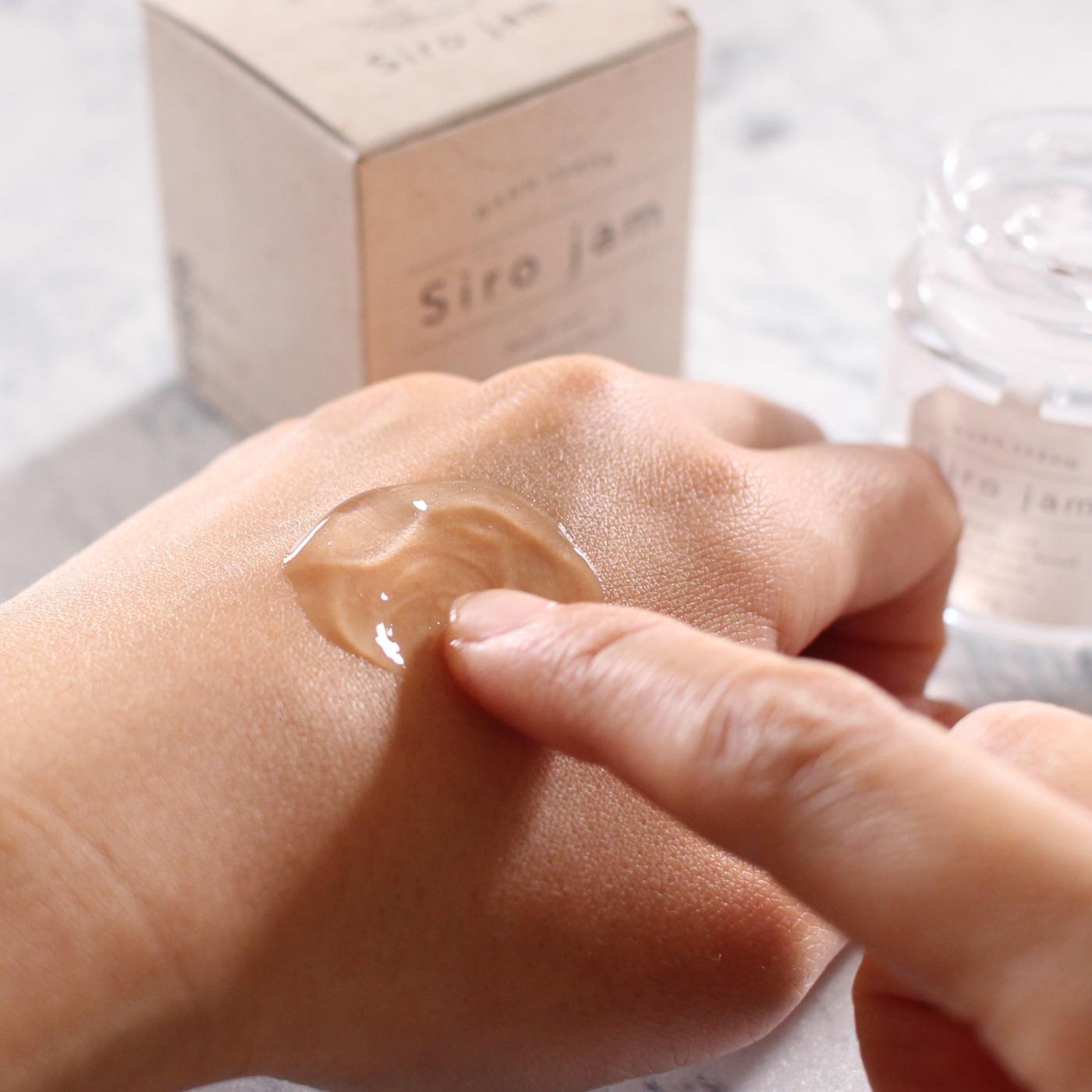 「Siro jam」は水分量の多いジェルタイプなので、水分をしっかり補給することができ、保湿に優れた5つの天然オイルが入っています。加えてスクワラン、グリセリルグルコシド、セラミドなどの美容成分も贅沢に配合されているため、ふっくら手肌が叶えられるのです。