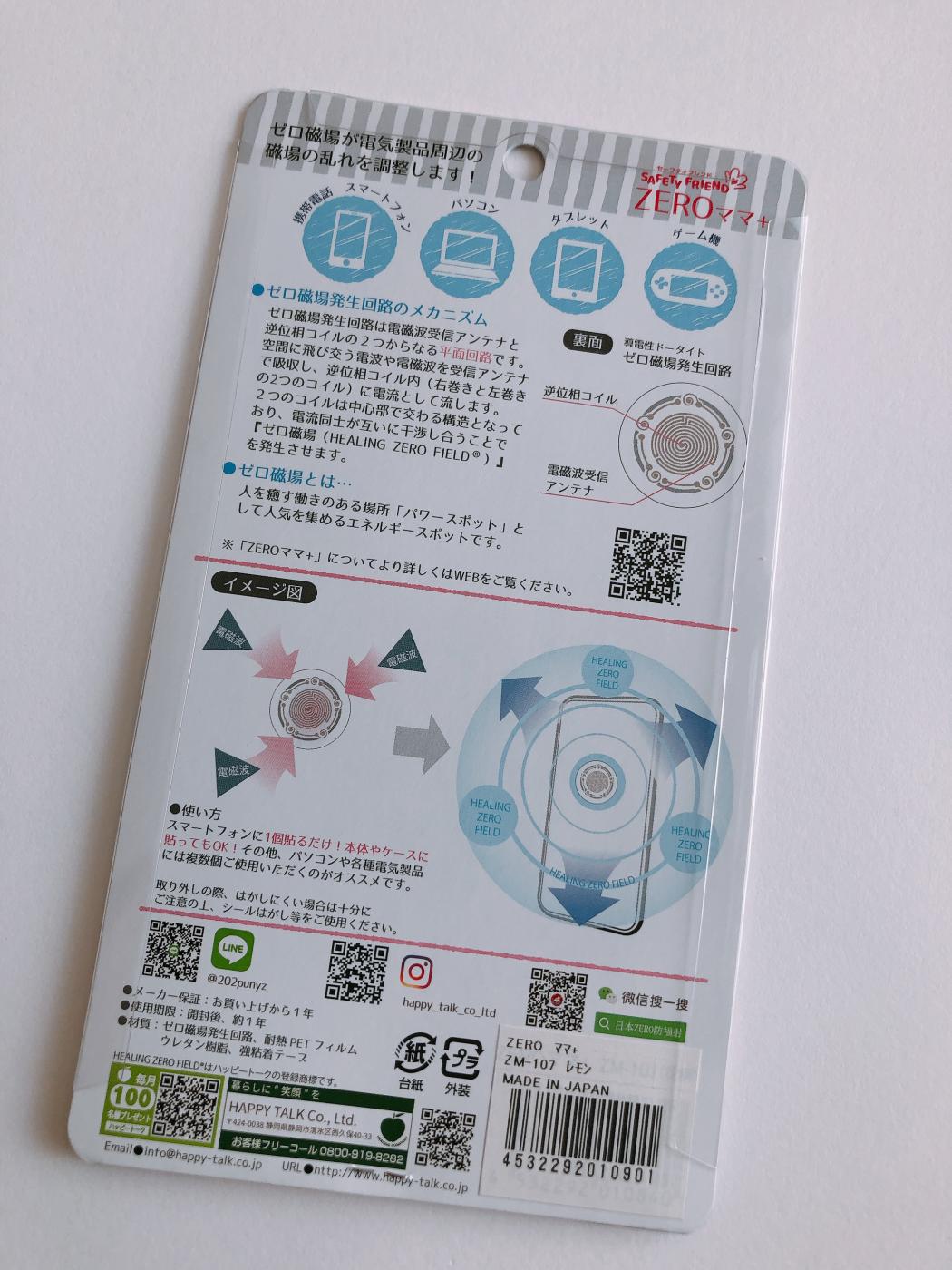 株式会社 ハッピートーク様から販売されている電磁波対策シール『ZEROママ+』をモニターさせていただき...
