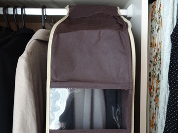上部のマジックテープでクローゼットやハンガーラックのバーに取り付けることができます。