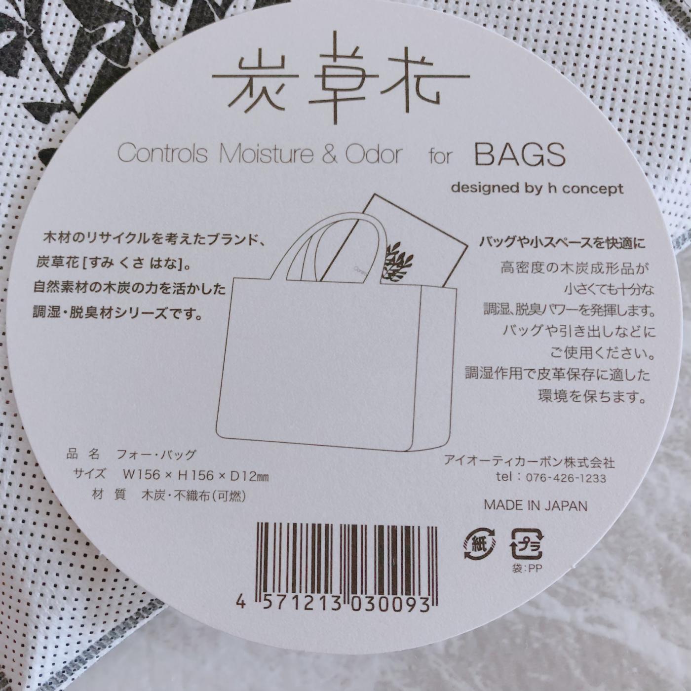 「炭草花 フォー・バッグ」は、繰り返し使える炭の天然除湿消臭アイテム。 普段使いのバッグの中のニ...