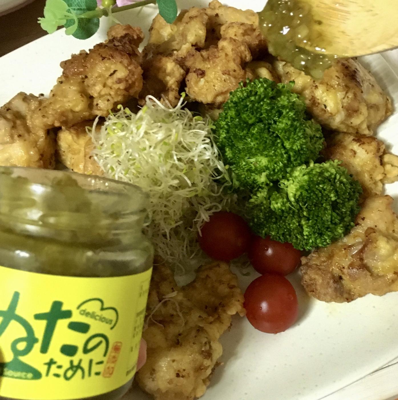 お肉やお魚との相性もいいとのことなので唐揚げにトッピングしてみました。