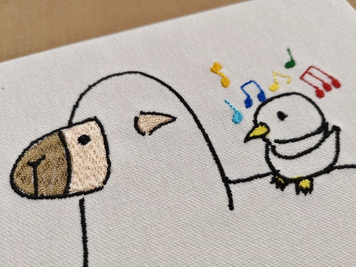 いくつもの絵を1枚に刺繍できるとのことで、兄弟合作絵の刺繍をお願いしたんですが