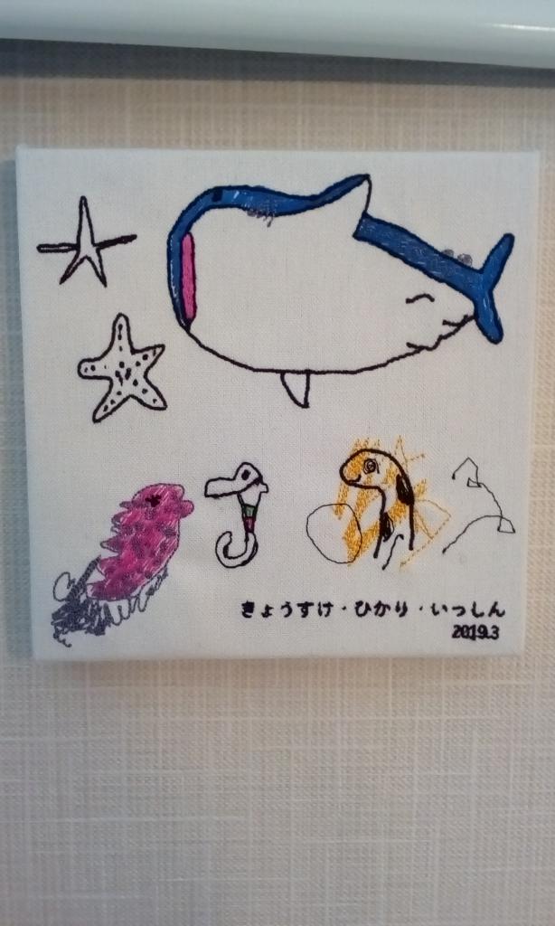 子供の作品はいつも写真データにして保存するようにしてるんですが 今回はオーダー刺繍でファブリック...