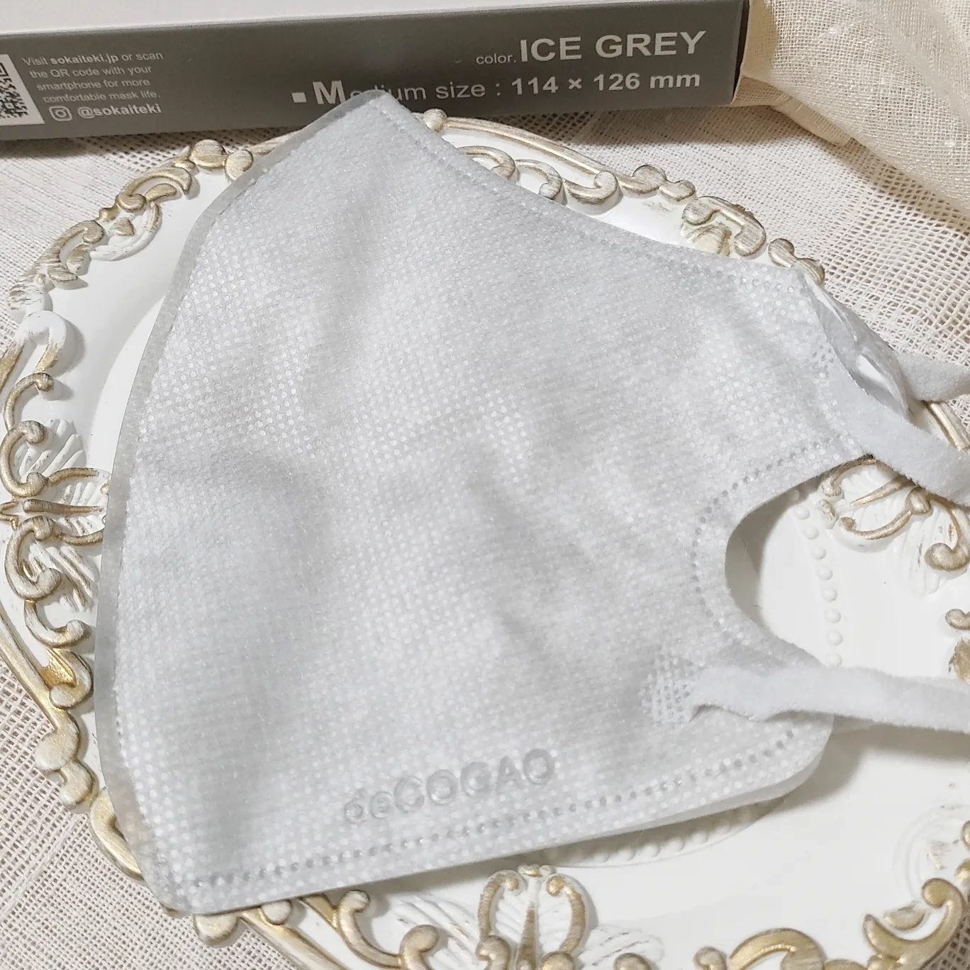 可愛いマスクを求めて、『deCOGAO』デコ顔のアイスグレーを使い始めました。 PFE・ VFE・ BFE 99.9%...