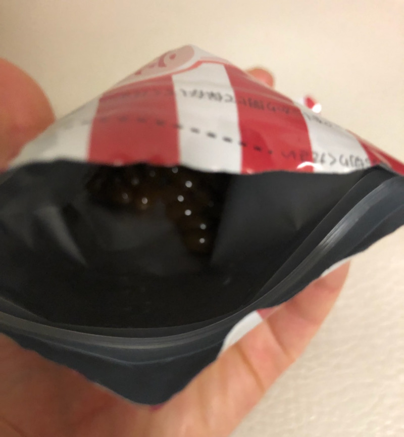 封を切っていると、茶色いツヤ感のあるラグビーボールの形をした粒です。