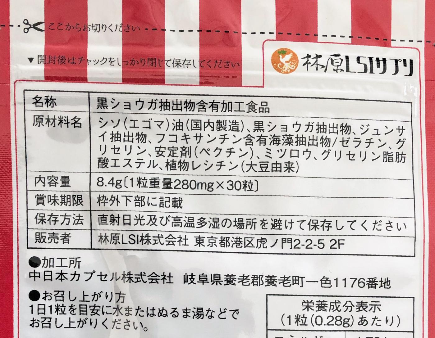 主原料は、黒生姜、じゅんさい、フコキサンチン、エゴマ油。