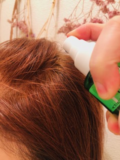 髪の毛が長い場合は髪をかき分けて頭皮を中心にスプレーします。