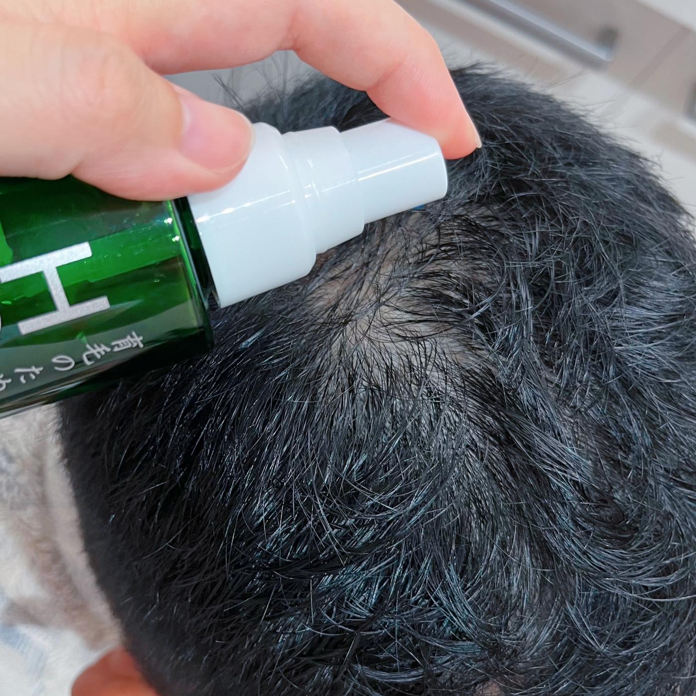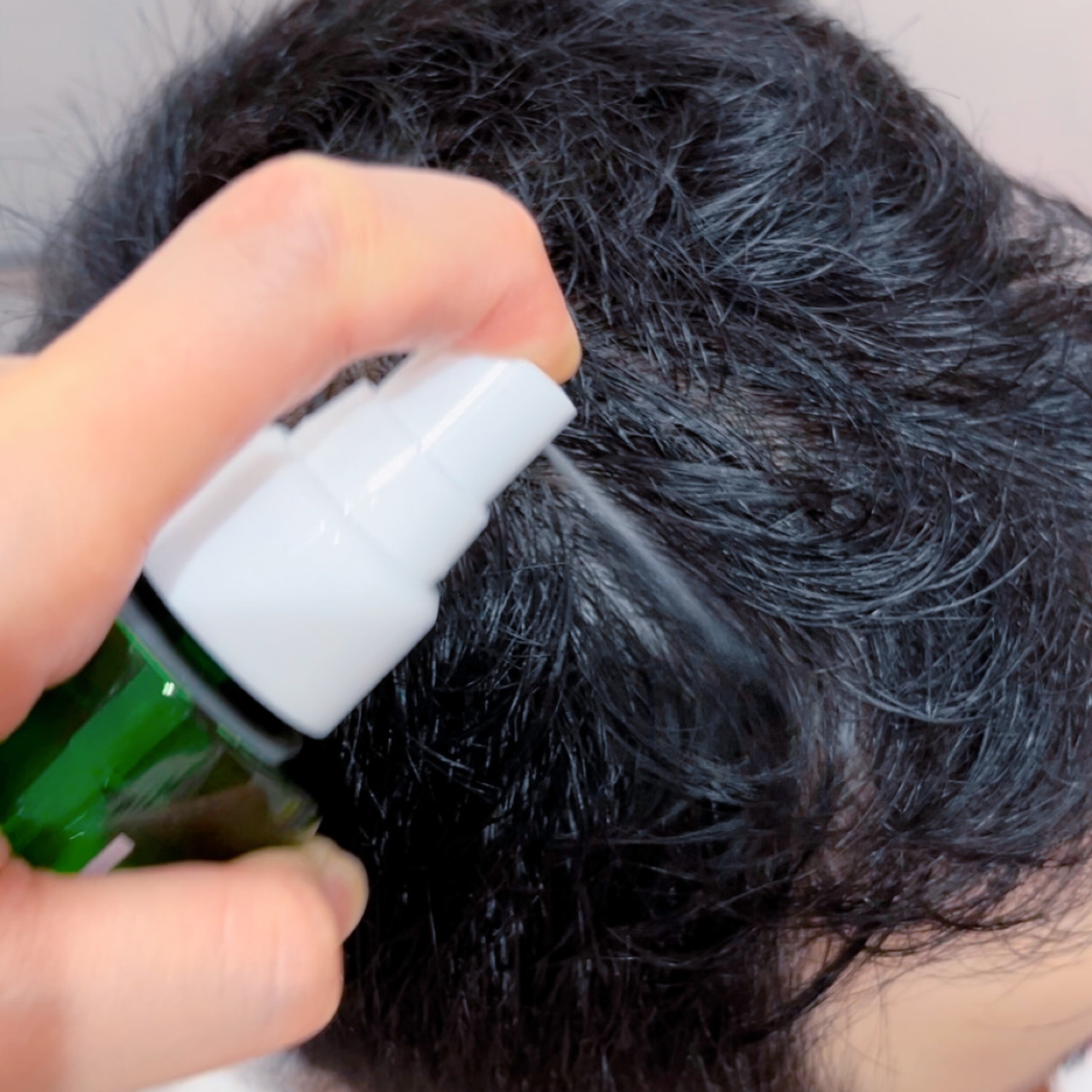 洗髪後、頭皮をしっかり乾かし髪をかきわけて、直接頭皮にかかるように5〜6回スプレーします。