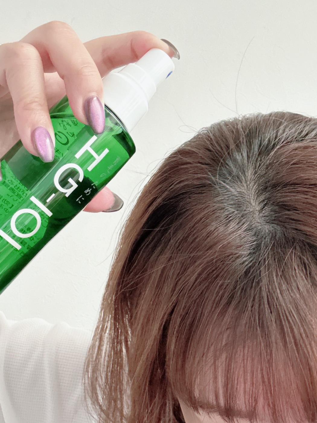 直接頭皮にかかるように5〜6回スプレーしてマッサージしながらなじませていきます!