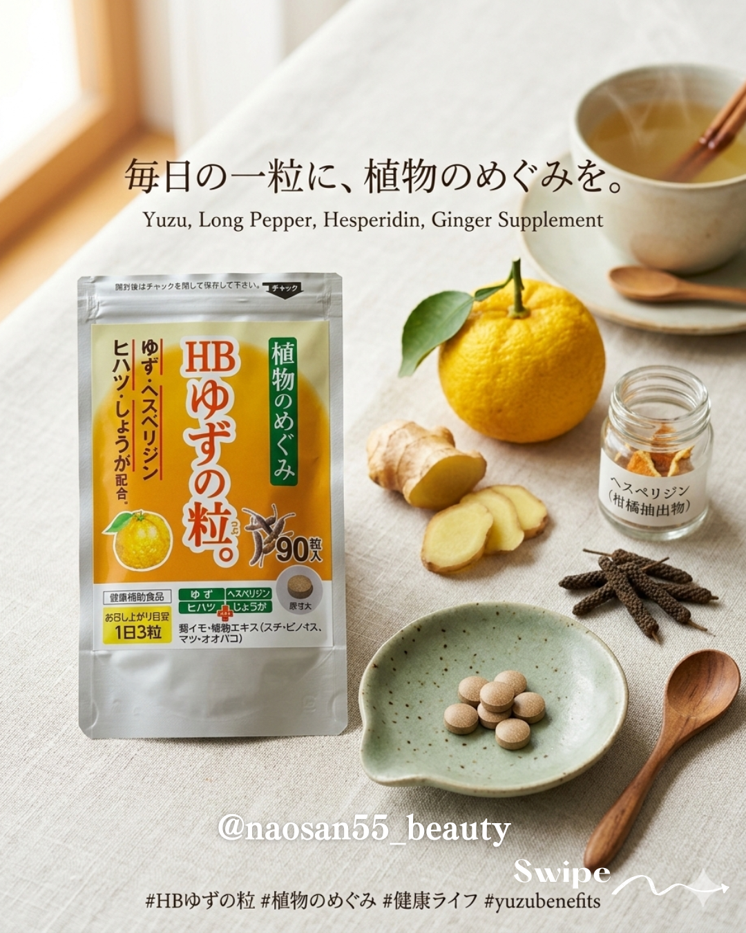 それだけでなく、寒さに負けない体づくりをサポートしてくれる「しょうが」や、内側からの巡りを助ける「ヒハツ」、そして柑橘類に含まれる注目のポリフェノール「ヘスペリジン」まで贅沢に配合されています。🌱