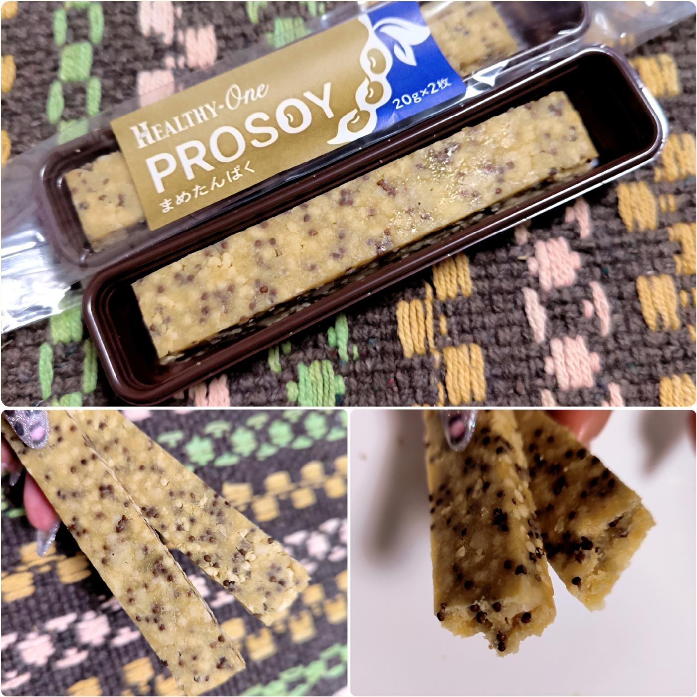 『PROSOY (荏胡麻)』は、主原料には大豆粉・大豆たんぱく・豆乳などの大豆由来の原料を使用し、1本あたりたんぱく質8.8gをしっかり確保。