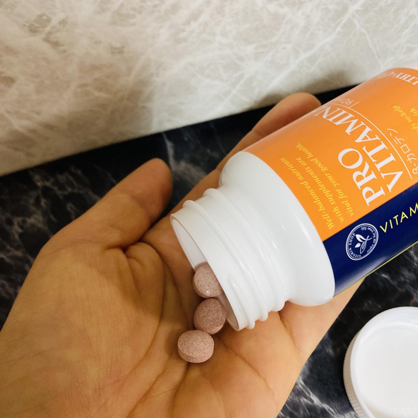 こちら、便利なボトルいりのビタミン剤です。とにかく“ポンと置いておける”楽さがあって、毎日よくいる場所に1本置いておけばOKなのがうれしいですね。個包装タイプと違って、毎回ビニールやアルミを破らなくていいからゴミも出ないし、フタを開けて飲むだけなので、続けやすいです。