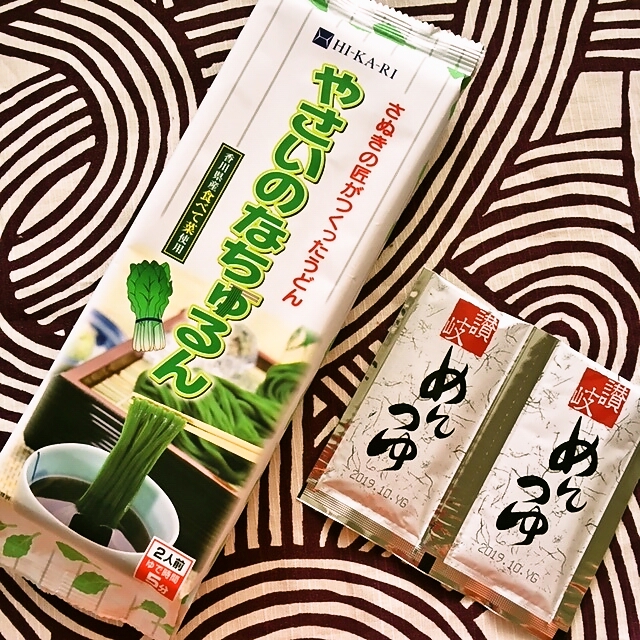 香川県産オリジナル野菜「食べて菜」。実はわたし、知りませんでした。グリーン色したきれいな細麺に、この食べて菜が練りこまれているそうです。麺自体はさぬきの匠が作ったものですから、品質や味に間違いはありません。食べて菜も工場で無農薬栽培されている安心安全な野菜、しかもβカロテンが豊富で栄養がいっぱい!アンチエイジングにも良いので積極的に食べたいですね。一見すると、お蕎麦みたいですが讃岐うどんです。約5分間の茹で時間中に少し青菜の香りがするものの、食べても葉物野菜独特の青臭い味はしなくて美味しいです。つゆは鰹、いわし、こんぶからとった濃縮だしで風味が良く、とても美味しいです。かけうどんにもざるうどんにもできるので、その時の気分に合わせて食べられるのがいいですね♪ つゆも麺も2人前ずつ入っているので、わたしの場合、主人と自宅で2人ランチの時に食べるのがピッタリです♪