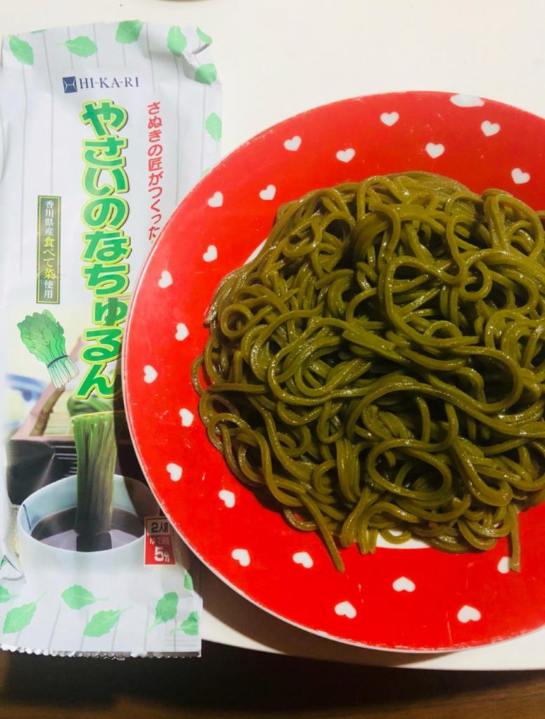 やさいのなちゅるん♪ 名前がユニークで可愛い、 香川県の讃岐うどん。 え?緑のうどん?と思われるか...