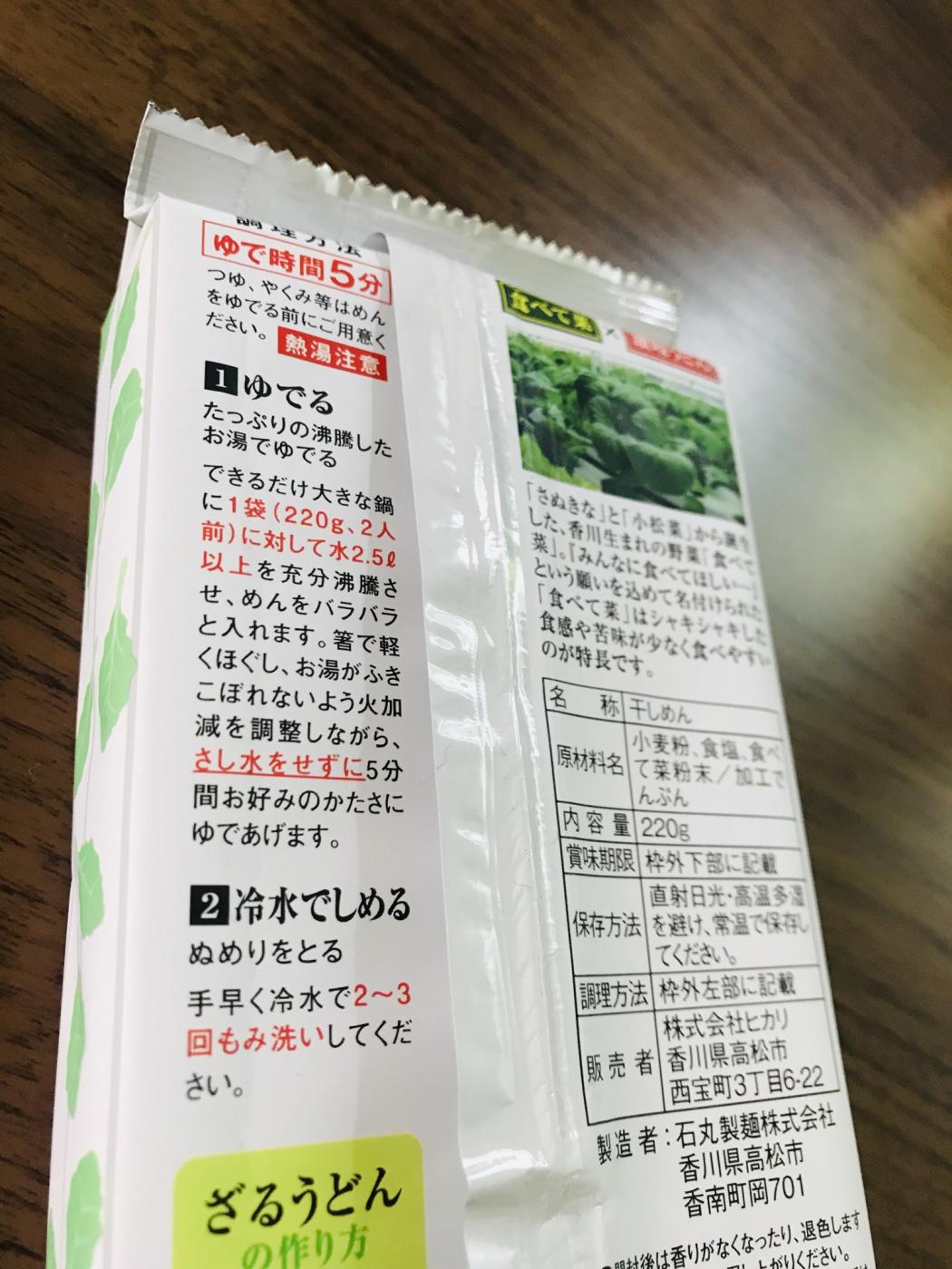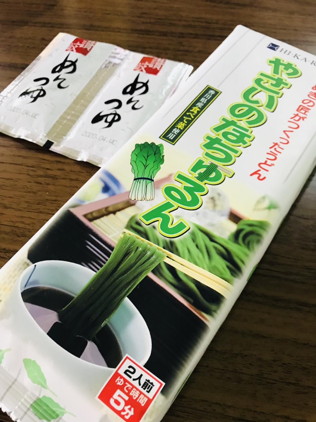 茹で上がりは更に色が濃くなって深緑色の麺が茹で上がりました!さぬきでつくられた、と書いてある ったので太麺かと思いきや細い麺でツルツルっと口に入ってきやすかったです!この緑色は香川県産の食べて菜、というお野菜の緑らしく抗酸化作用があるらしく、食べてアンチエイジング効果が期待できるのは嬉しいです!