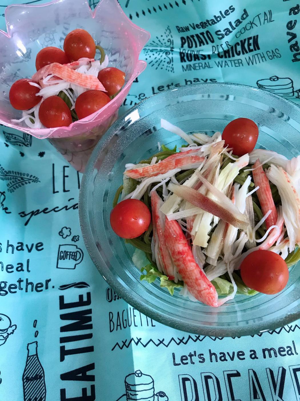 娘のサラダうどんは、かわいいカップに盛り付けてあげました。