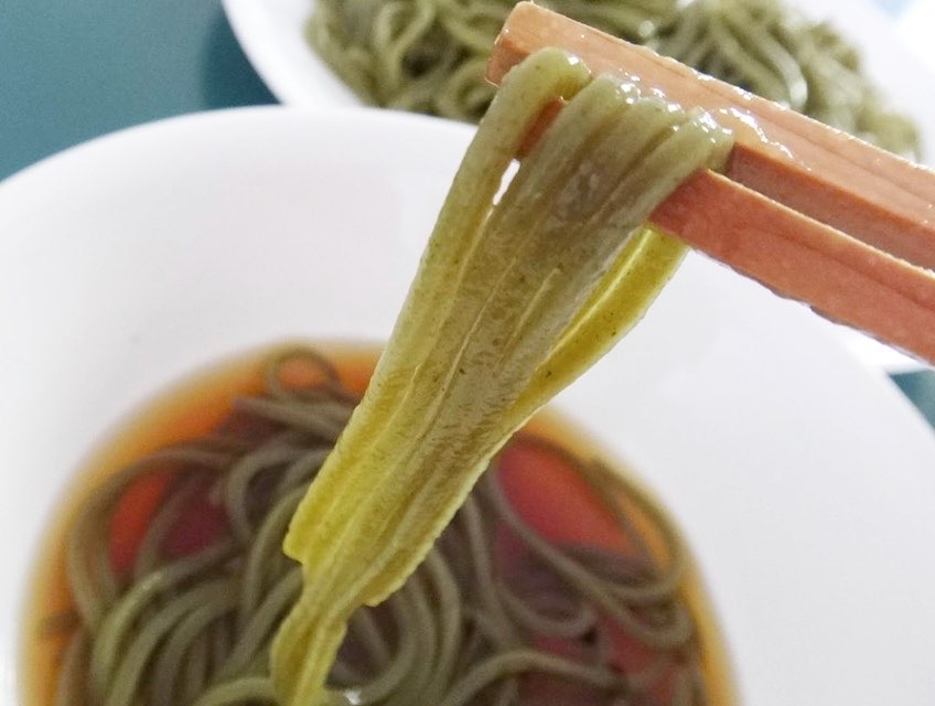 緑色のちょっと変わった讃岐うどんのやさいのなちゅるん。 この緑色は香川県のオリジナル野菜「食べて...