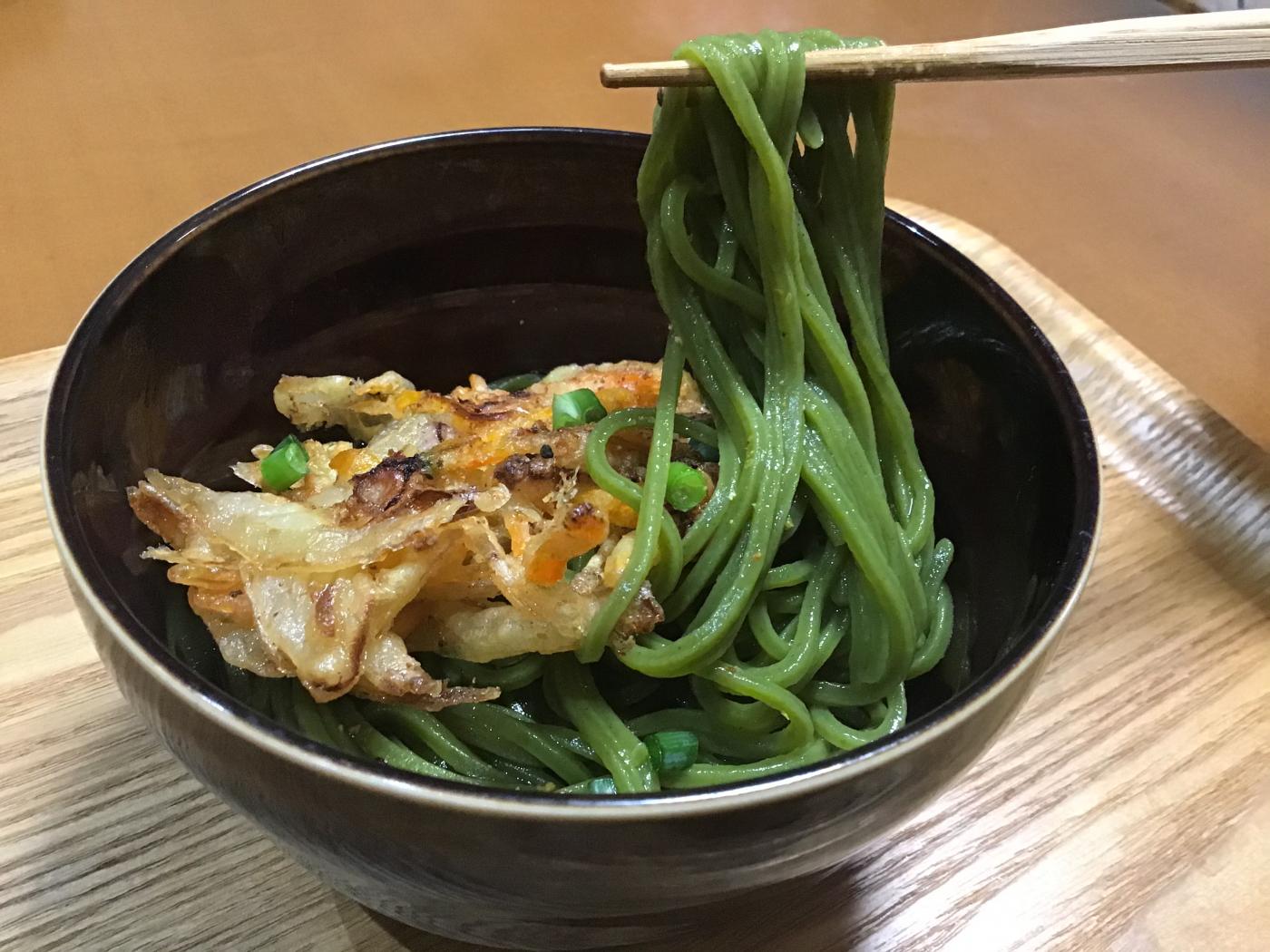 野菜の入っている麺なので野菜のかき揚げをのせて食べてみました